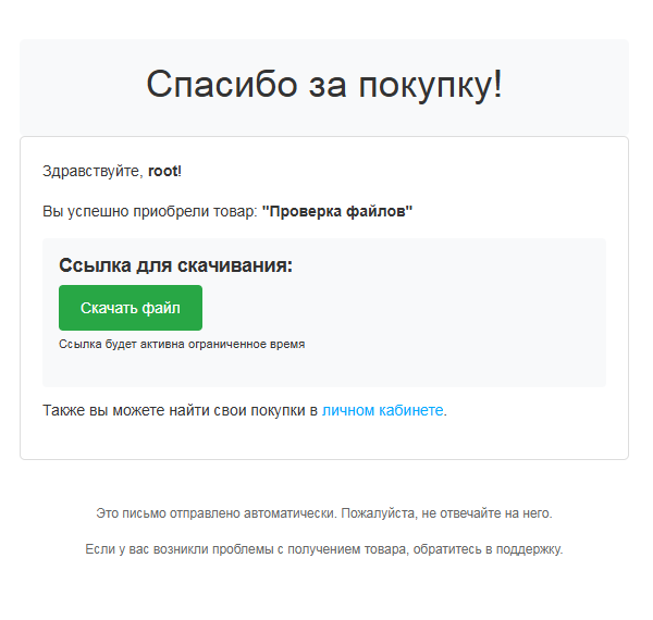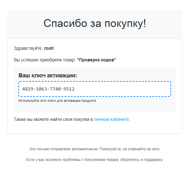 • Автоматическая отправка данных на email покупателя