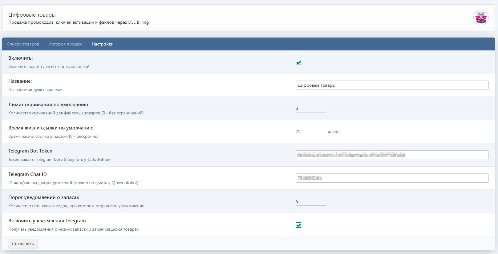 Плагин закрывает все ключевые задачи цифрового магазина — от выдачи товара до уведомлений в Telegram и контроля остатков.