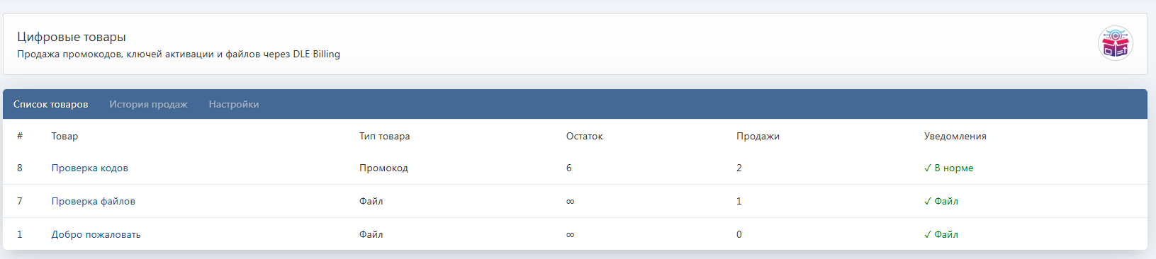 Цифровые товары для DLE Billing