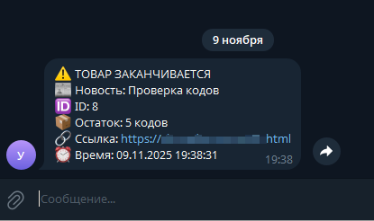 • Уведомления по ключам, промокодам и файлам
