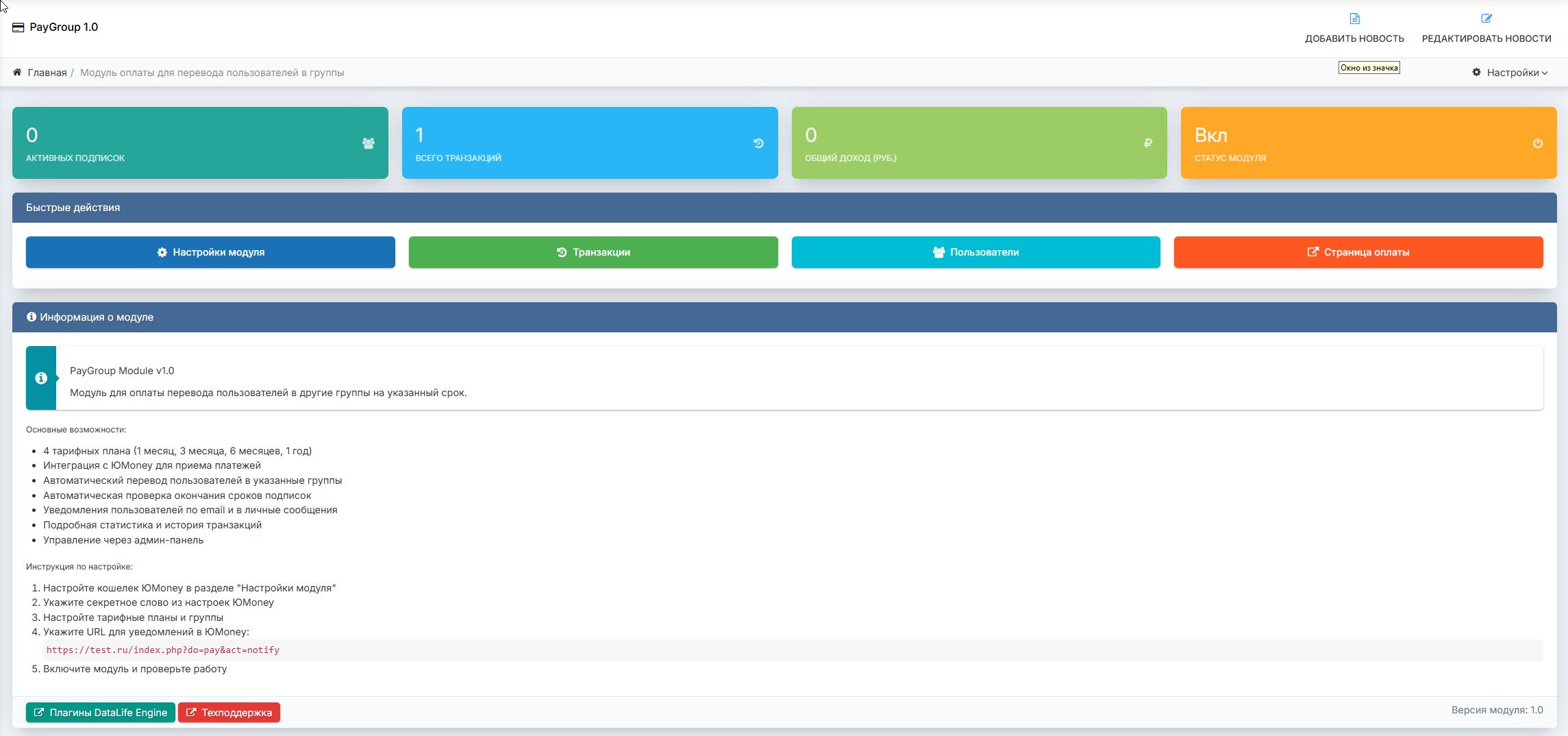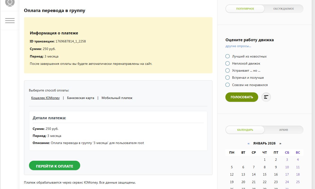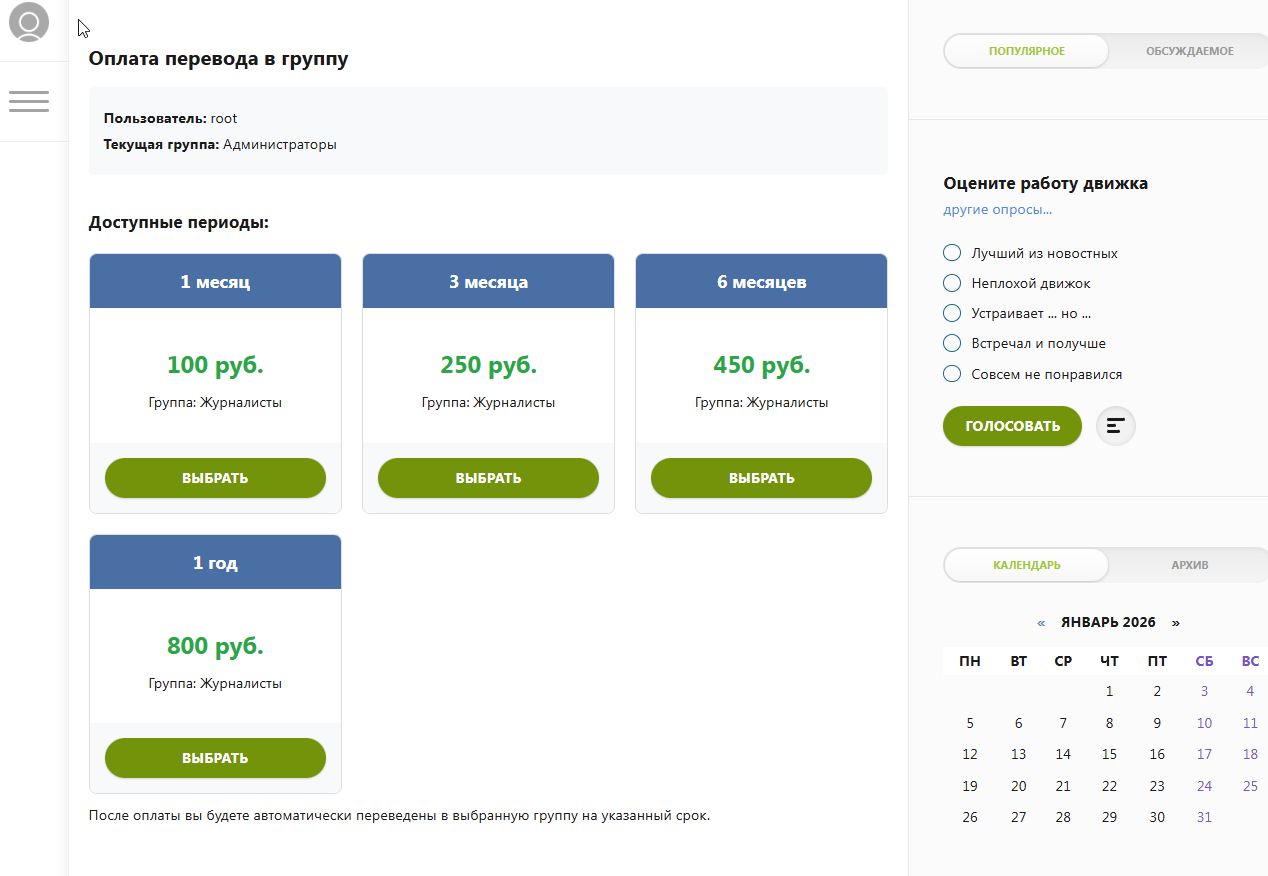 Юмани PayGroup — это удобный и полностью автоматизированный модуль для платного перевода пользователей в любые группы сайта с помощью сервиса ЮMoney.
