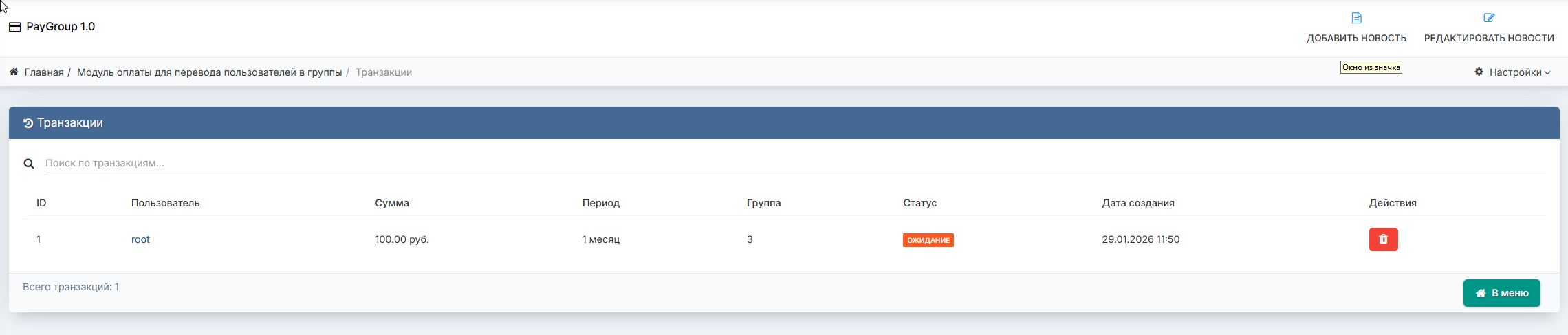 - Автоматический перевод пользователя в группу после оплаты