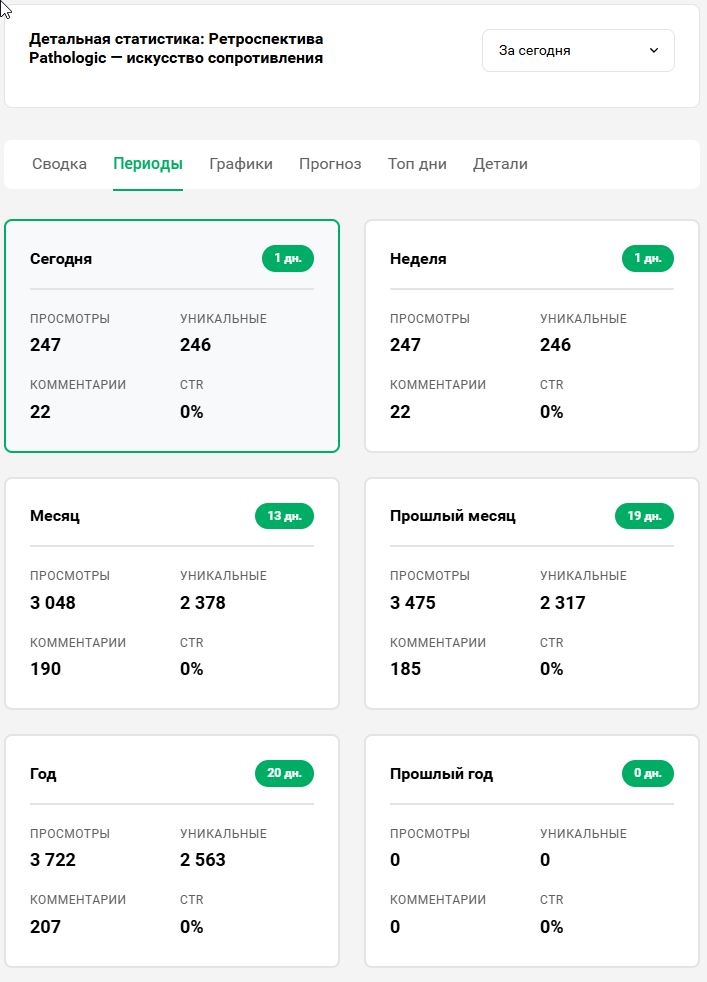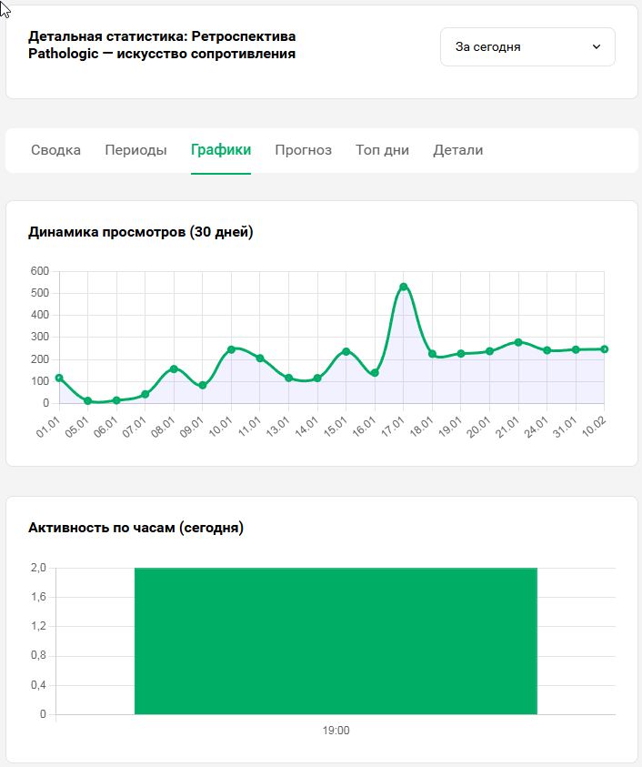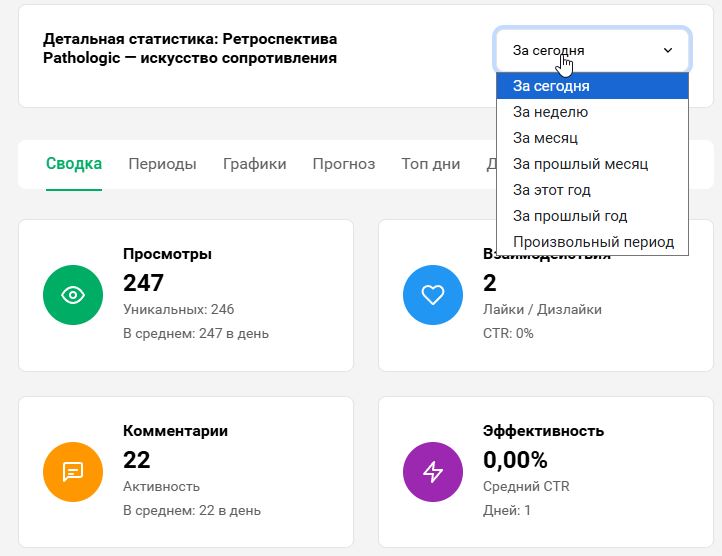 Позволяет быстро определить лучшие публикации и дни максимального интереса.