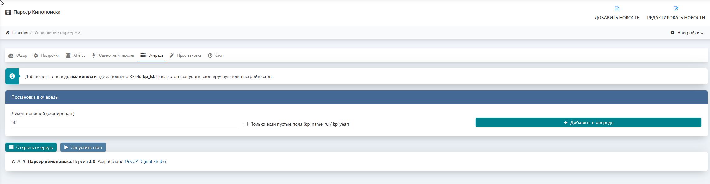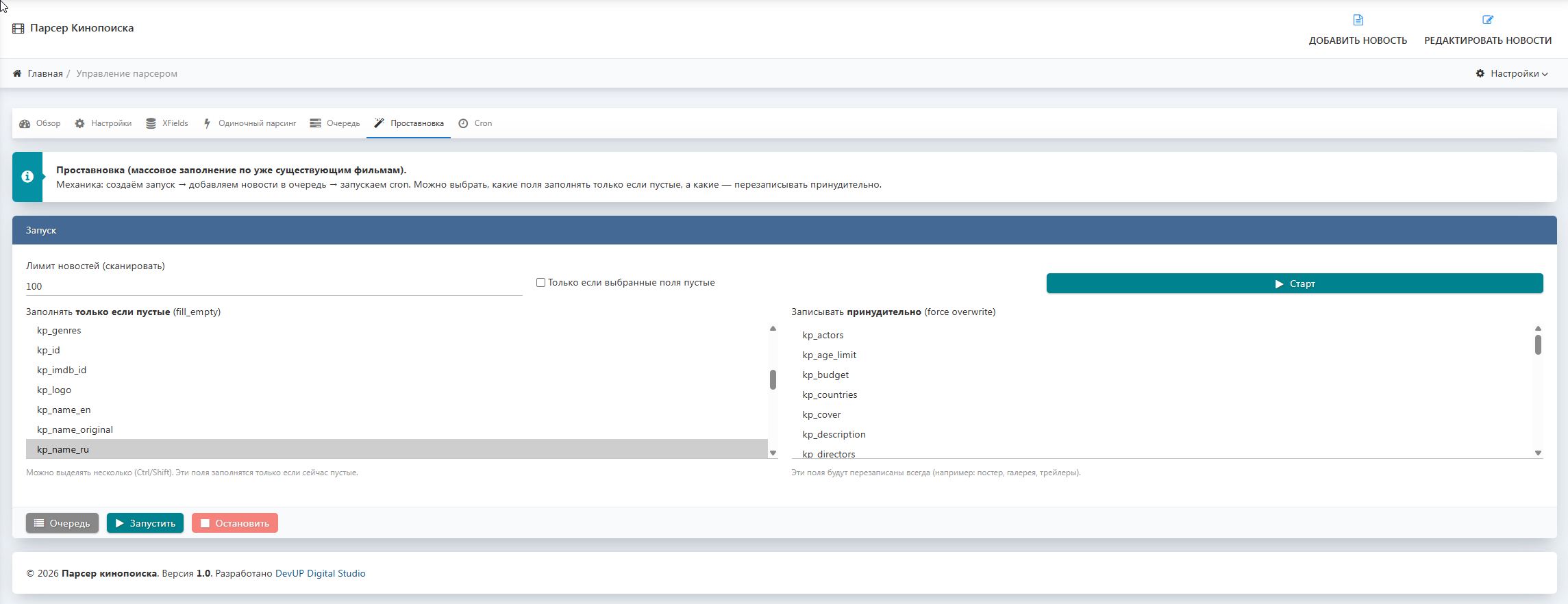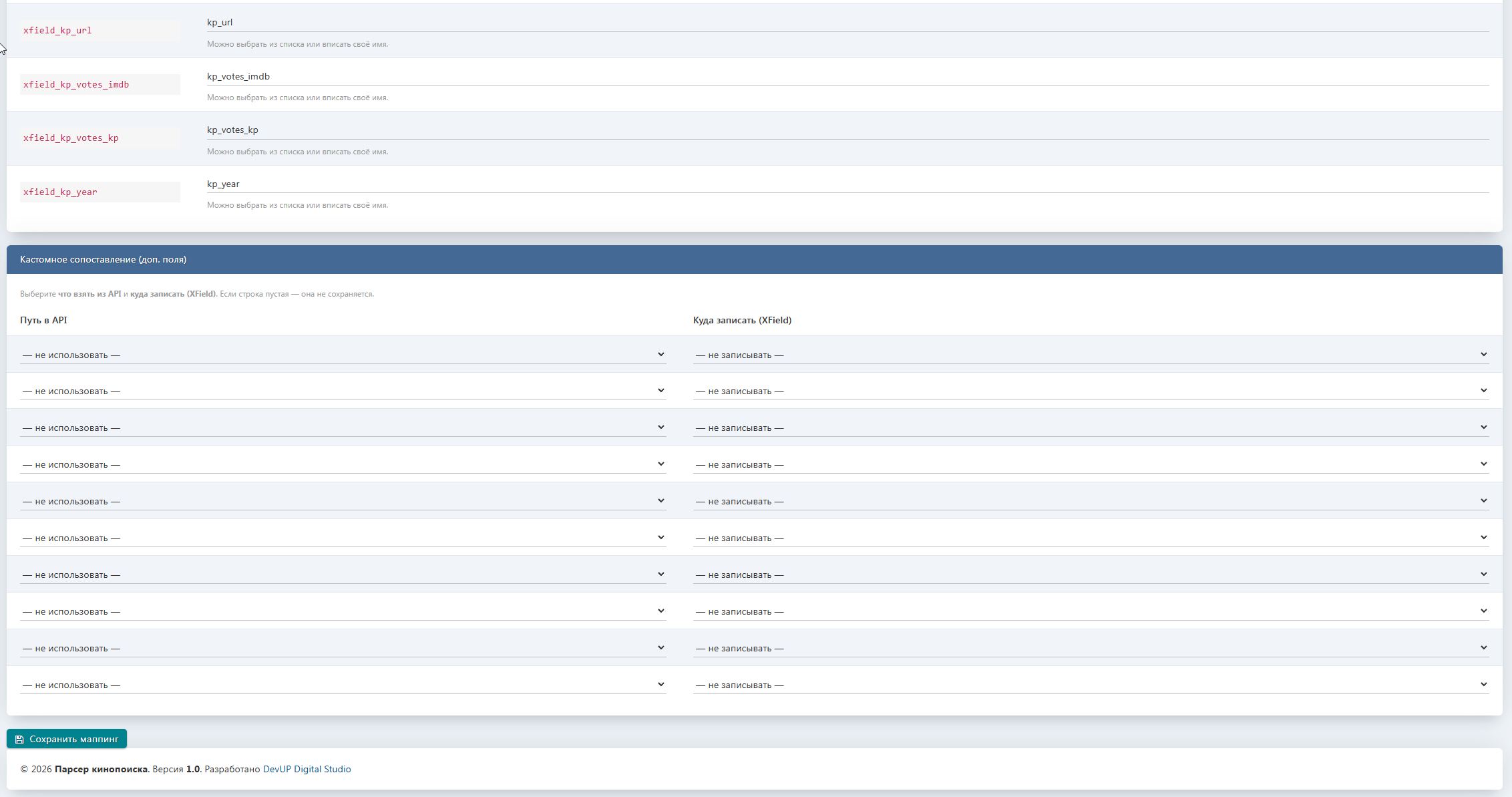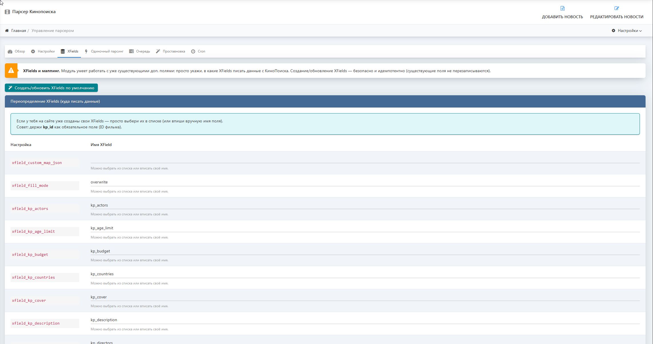 KP Parser — автоматическое заполнение фильмов и сериалов с Кинопоиска по одному ID.